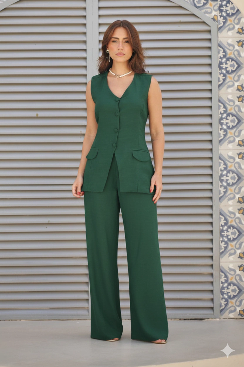 O SEU CONJUNTO COLETE ALONGADO E CALÇA: