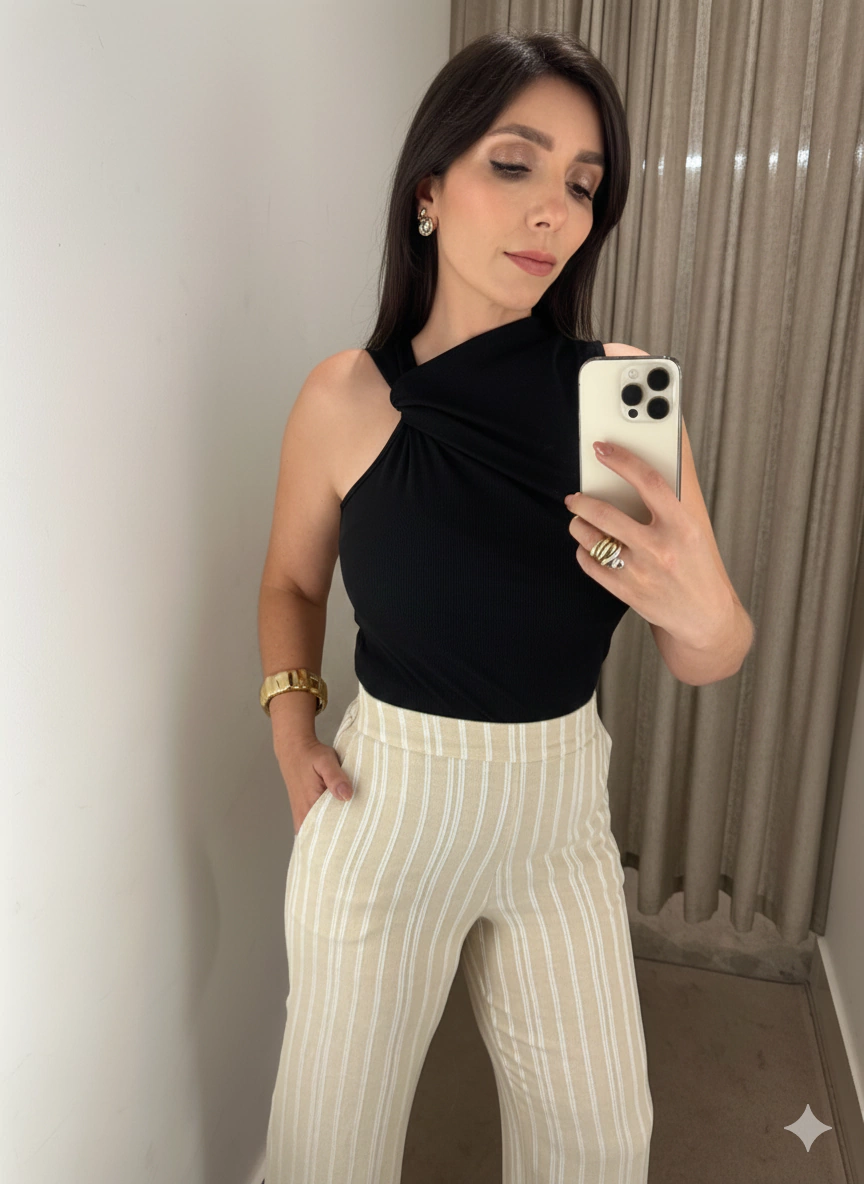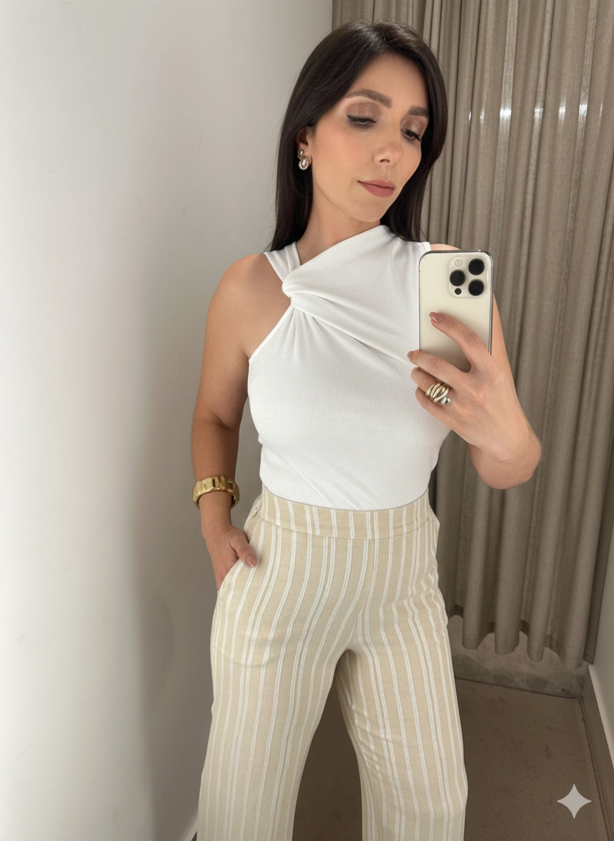 REGATA MALHA CANELADA ASSIMÉTRICA